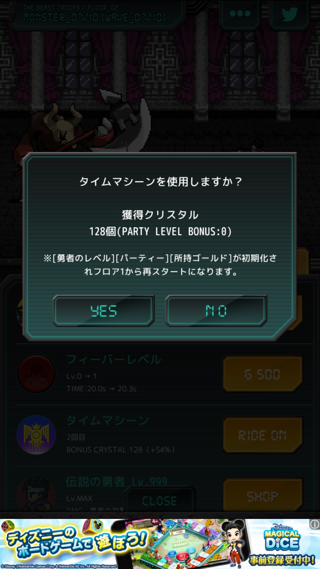 ちなみに、このタイムマシーンを使うと過去に戻り、またレベルもお金も1からのスタート。しかし、その時のレベルに応じて、特別なアイテムであるクリスタルがもらえます。