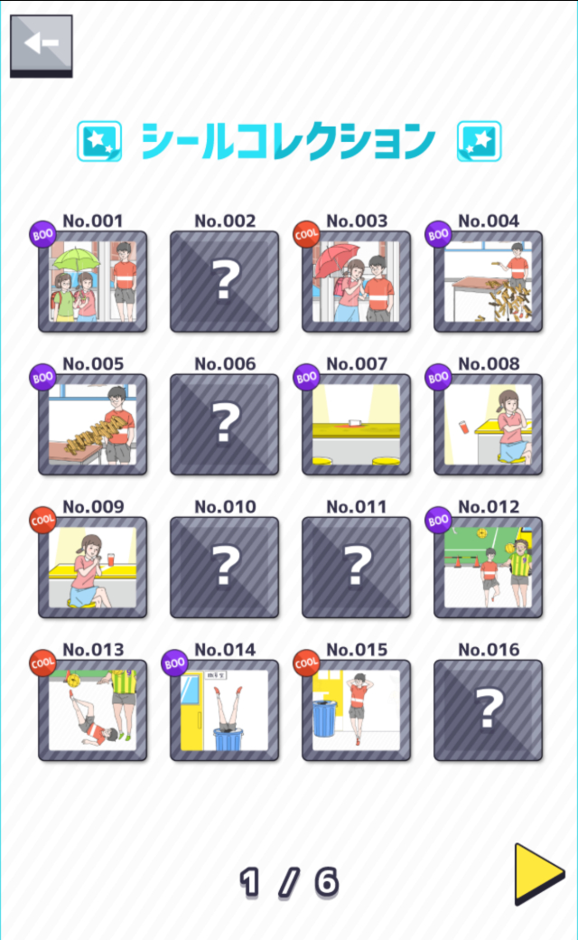 各ステージで失敗したときの場面や、成功時の場面を記録したスクリーンショットを「シールコレクション」で集められます。「シールコレクション」に記録されたスクリーンショットは、SNSなどでシェアすることができます。