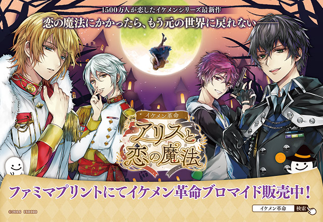 株式会社サイバードは、累計会員数1,500万人を誇る大人気恋愛ゲーム「イケメンシリーズ」待望の最新作『イケメン革命◆アリスと恋の魔法』のサービス開始直前を記念して、ハロウィンをイメージした特製ブロマイド(1種)をファミリーマートにて発売中です。