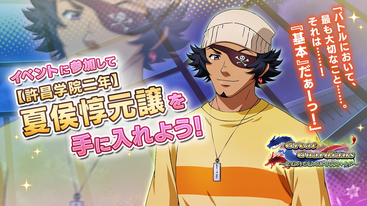 本イベントでは、「一騎当千Great Guardians」のシナリオを追体験できるほか、イベントクエストのクリアで限定SR闘士「【許昌学院二年】夏侯惇元譲」を獲得できます。
