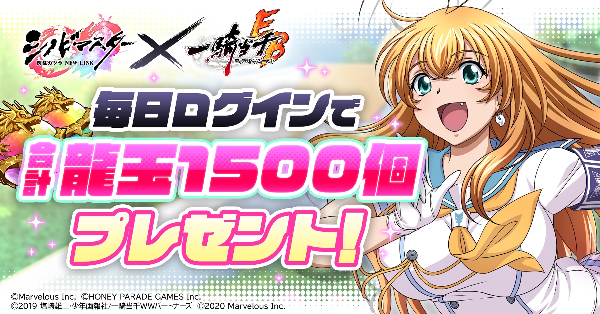 本日4月28日(水)メンテナンス後より、期間中のログインで合計1,500個の龍玉を獲得できる「シノマスコラボ開催記念ログインボーナス」が実施中です。
