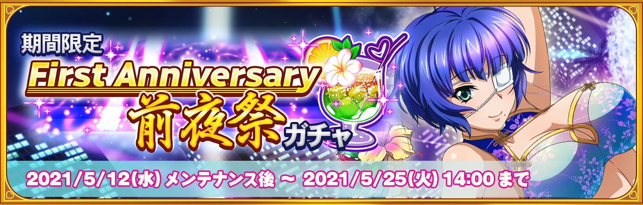 5月12日(水)メンテナンス後より、「First Anniversary 前夜祭 ガチャVol.1」が開催中です。