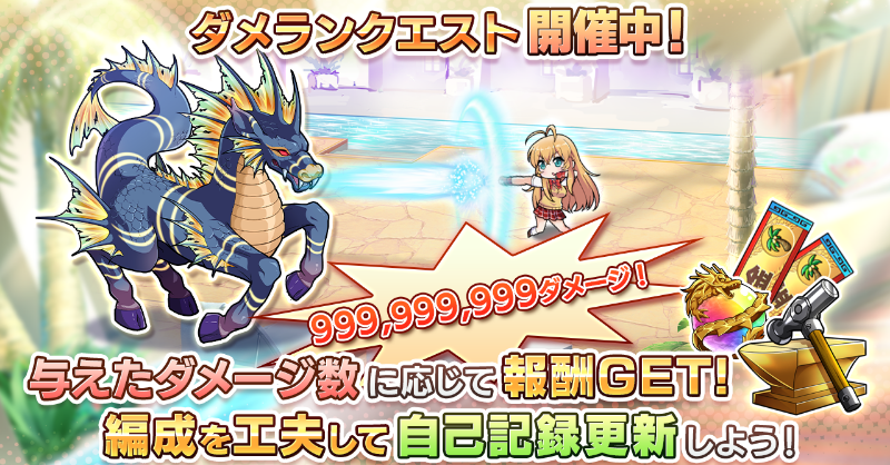 本日6月18日(金)メンテナンス後より、ボスに与えたダメージを競う「ダメランクエスト」が開催中です。