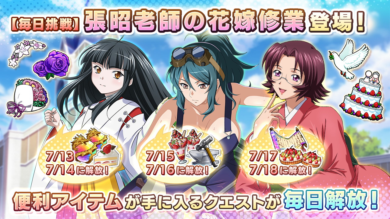 さらに、順次解放される「【毎日挑戦】張昭老師の花嫁修行」クエストをクリアすると、龍玉や「老師の教え(SSR)」などを獲得可能です。