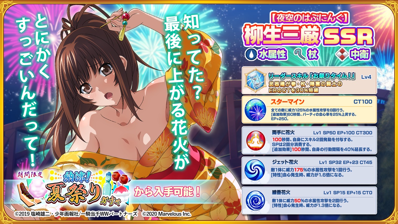 『一騎当千エクストラバースト(えくばと)』にて、本日2021年7月26日(月)メンテナンス後より、イベント「夏の夜空のはぷにんぐ」が開催されました。