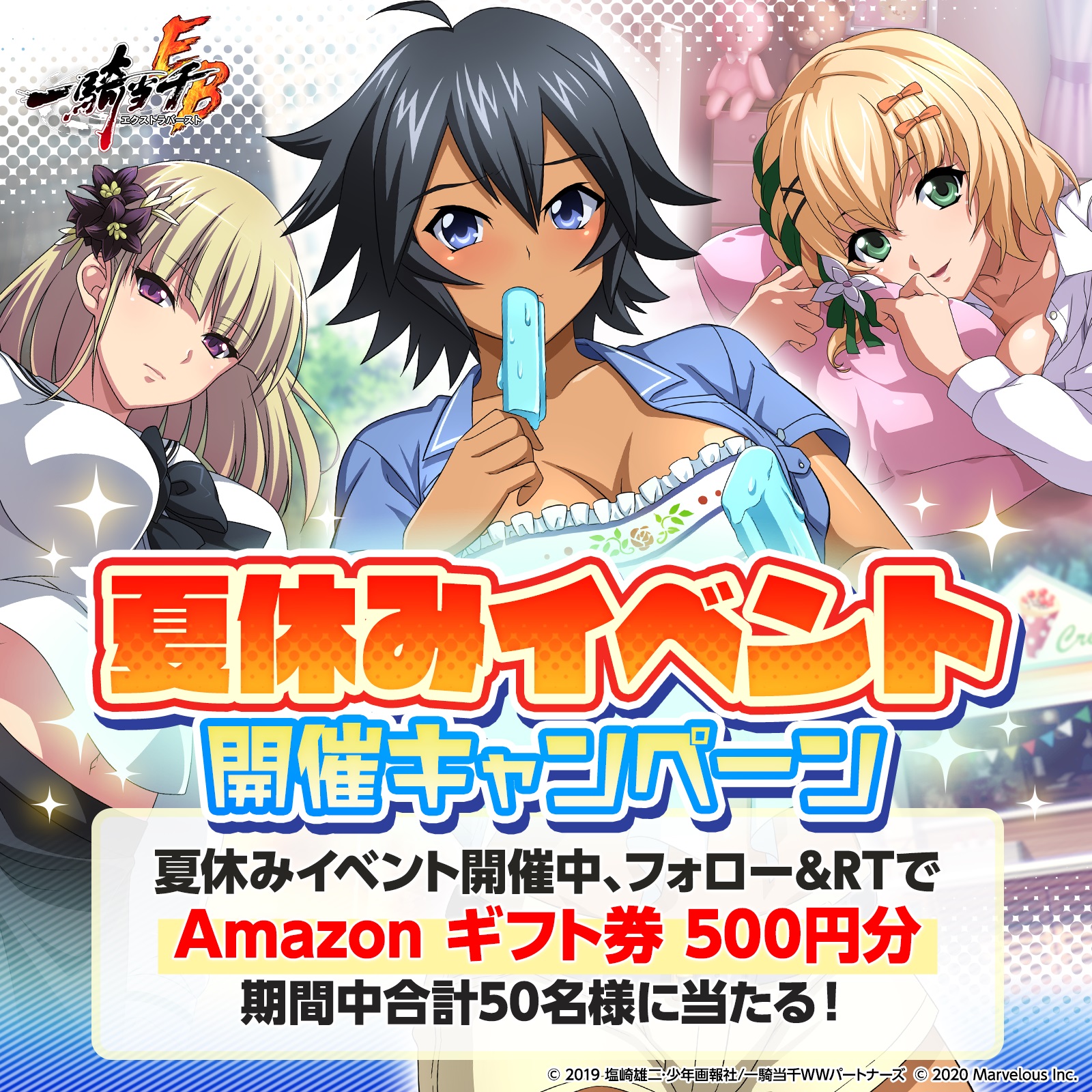 一騎当千EB夏休みイベント開催中!日頃の感謝を込めて毎日抽選で #アマギフ が期間中合計50名様に500円分その場で当たる!