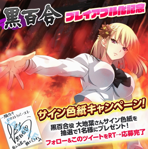 黒百合が遂にプレイアブルキャラとして登場したことを記念して黒百合役 #大地葉 さんのサイン色紙を抽選で1名様にプレゼント!