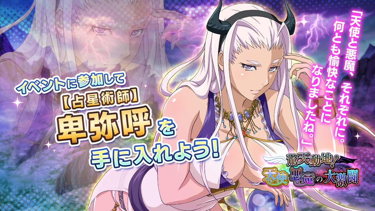 本イベントでは、天使や悪魔に扮したの闘士たちが登場する限定シナリオを楽しめるほか、シナリオクエストのクリアで限定SR闘士「【占星術師】卑弥呼」を獲得できます。