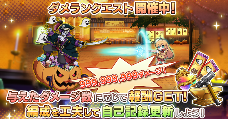 9月30日(木)メンテナンス後より、ボスに与えたダメージを競う「ダメランクエスト」が開催中です。