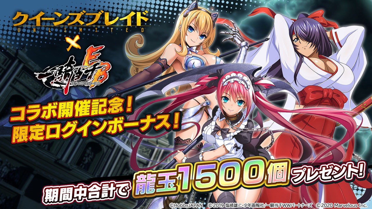 『一騎当千エクストラバースト(えくばと)』にて、本日2021年11月1日(月)メンテナンス後より、「クイーンズブレイドUNLIMITED」コラボが開催されました。