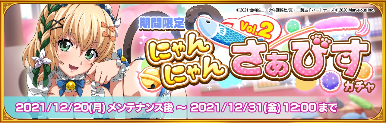 『一騎当千エクストラバースト(えくばと)』にて、本日2021年12月20日(月)メンテナンス後より、「にゃんにゃんさぁびすガチャVol.2」が開催されました。