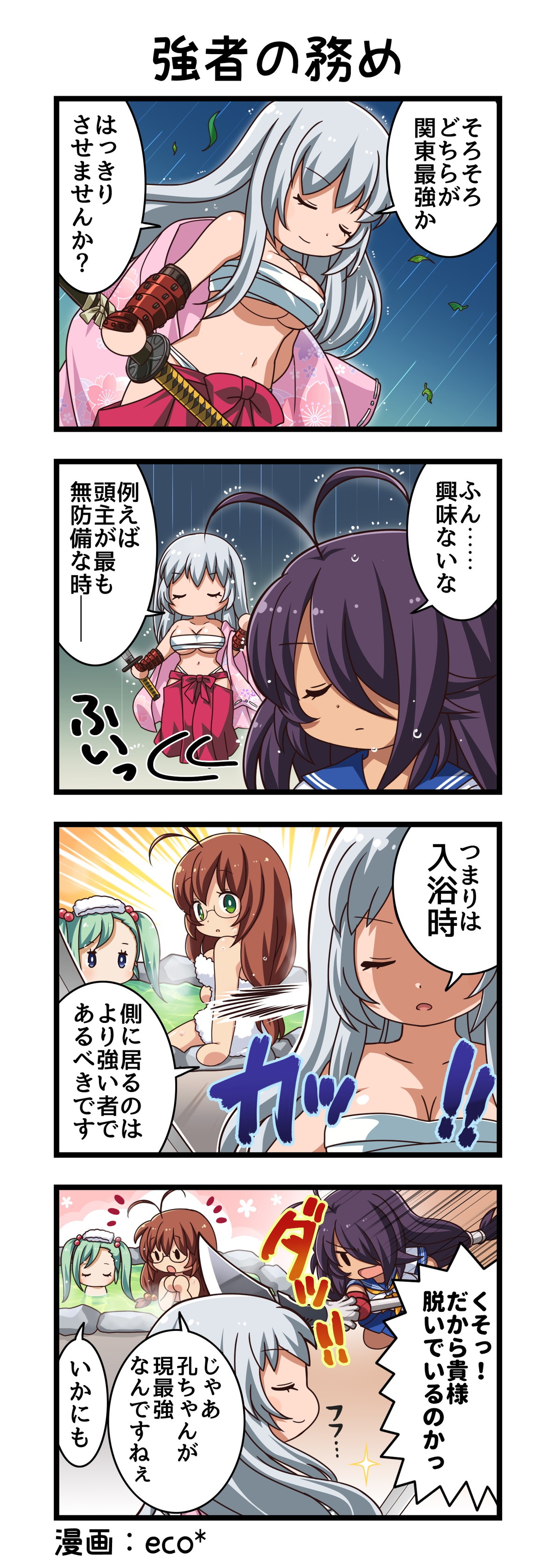 今回の4コマでは、入浴時の「劉備」の側に居るため、「趙雲」が関東最強を主張しています。