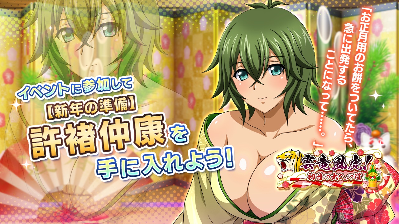 本イベントでは、晴れ着姿の闘士が登場する限定シナリオを楽しめるほか、クエストのクリアで限定SR闘士「【新年の準備】許褚仲康」を獲得できます。