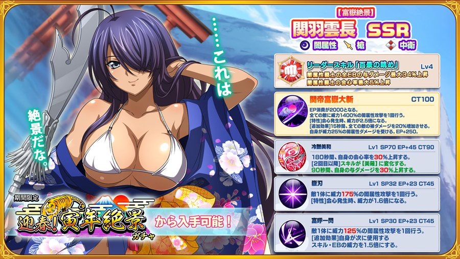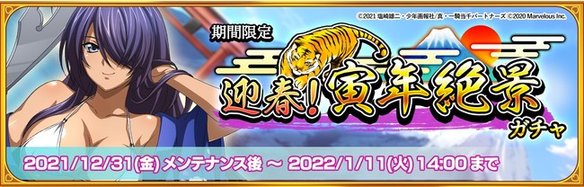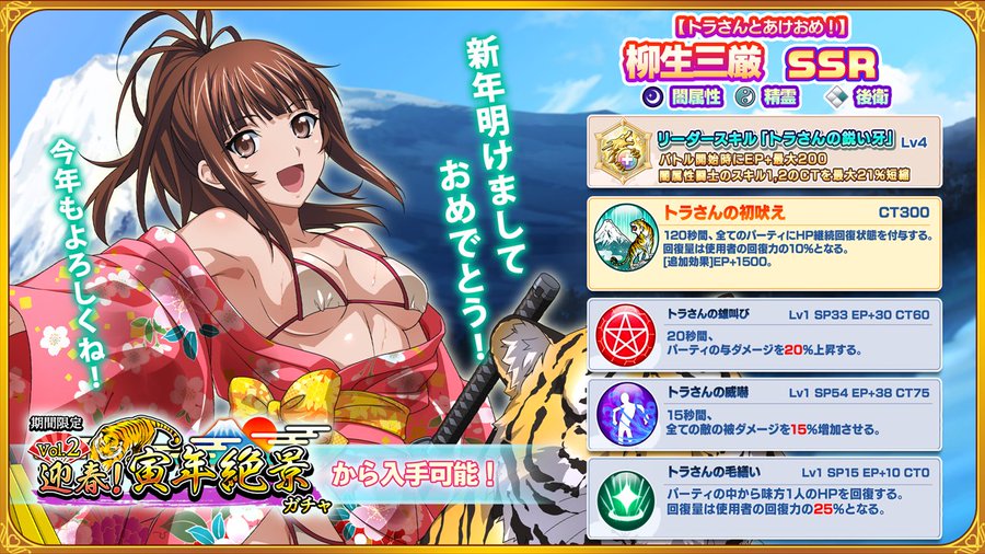 『一騎当千エクストラバースト(えくばと)』にて、本日2022年1月5日(水)15:00より、「迎春!寅年絶景ガチャVol.2」が開催されました。