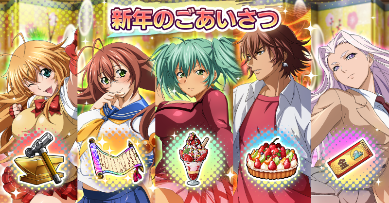 さらに、イベント専用コイン「あけおめコイン」や、「【あけおめ】金のアイテムガチャ券」「【あけおめ】銀のアイテムガチャ券」を集めると、限定装備「迎春扇」「福だるま」「羽子板」や、各種強化素材などを獲得できます。