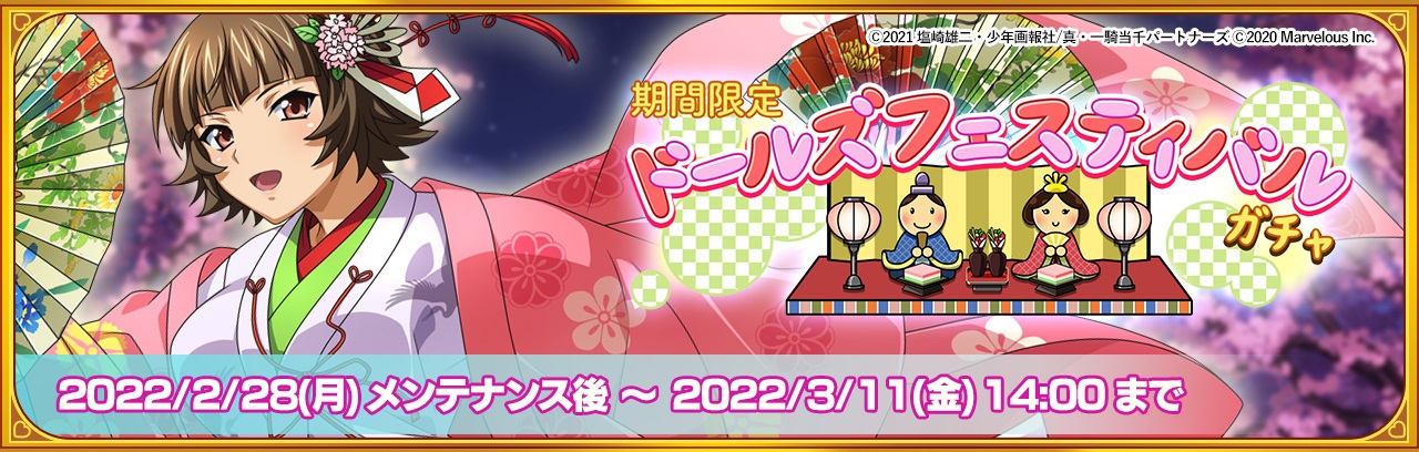 2月28日(月)メンテナンス後より、「ドールズフェスティバルガチャVol.1」が開催中です。