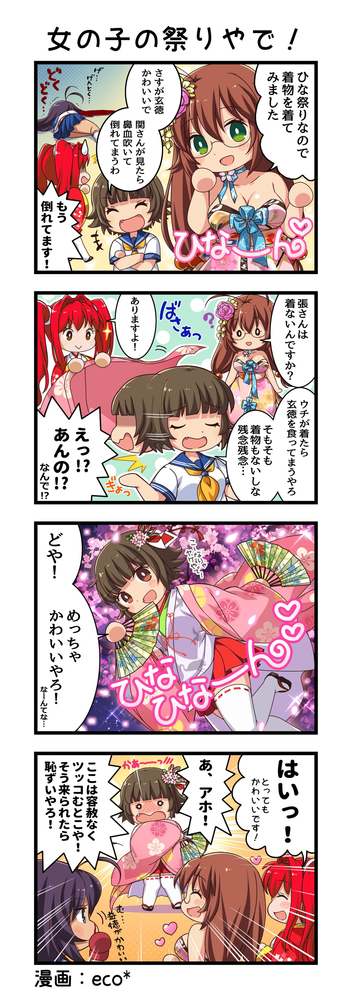 今回の4コマでは、ひな祭りに合わせて着物姿の「劉備」と「張飛」が登場しています。