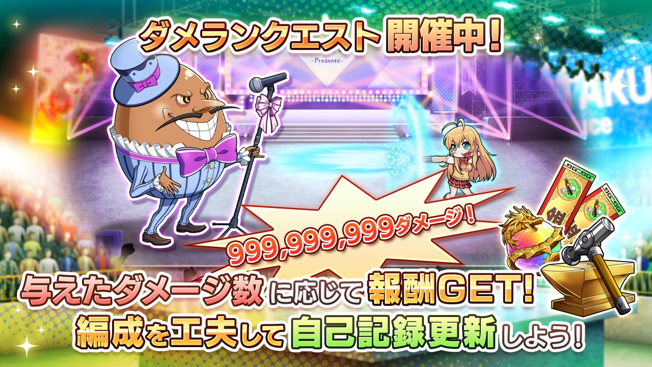 3月17日(木)メンテナンス後より、ボスに与えたダメージを競う「ダメランクエスト」が開催中です。