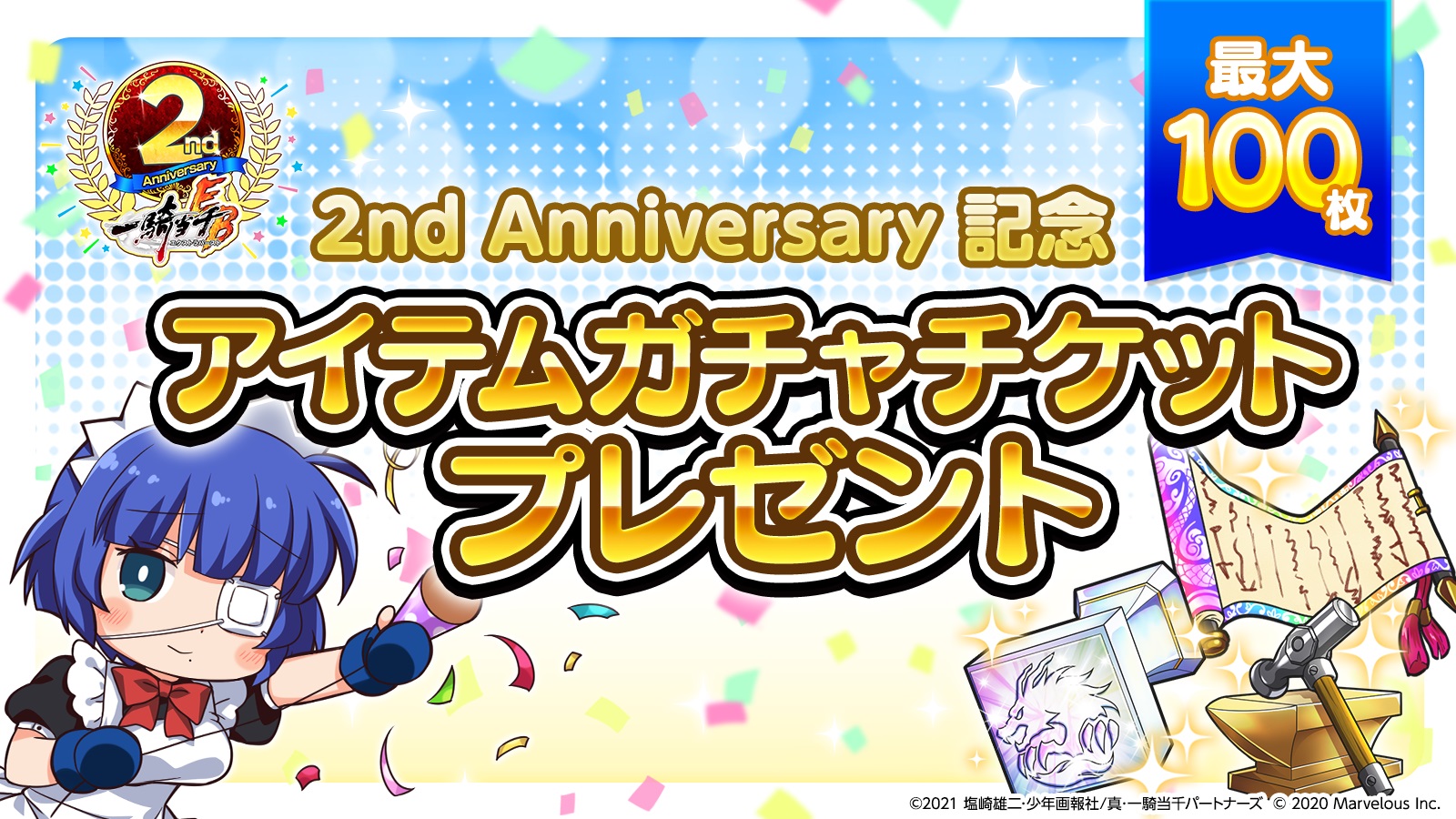 なお、本チケットを使用すると、豪華アイテムがラインナップされた「2nd Anniversary記念アイテムガチャ」を引くことができます。