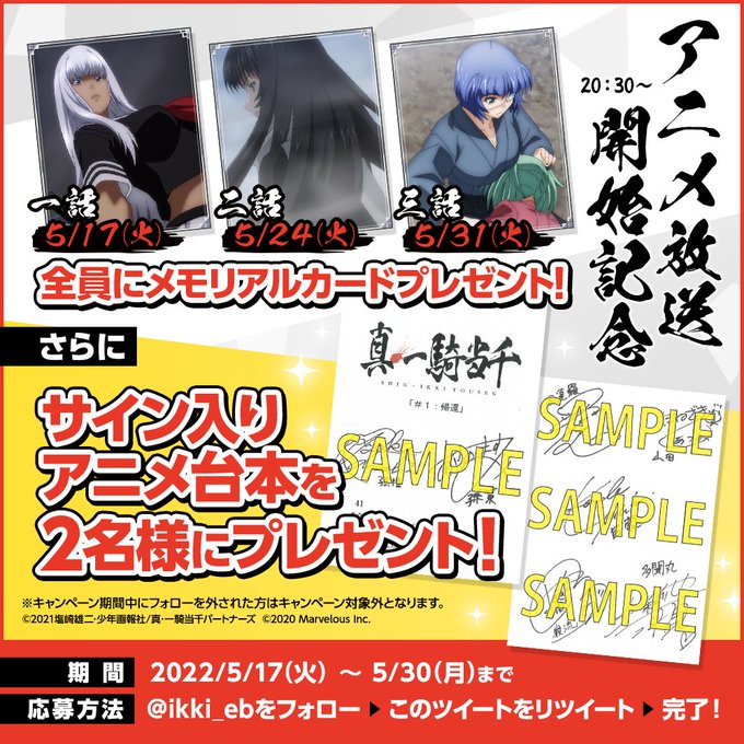 さらに、公式Twitterアカウント(@ikki_eb)をフォローし、対象ツイートをRTすると、抽選で2名にサイン入りアニメ台本が当たります。