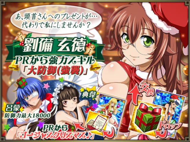 株式会社マーベラスは、人気アニメ「一騎当千 Extravaganza Epoch」のキャラクターたちが活躍するモバイルオンラインゲーム『一騎当千 バーストファイト』にて、本日11月30日(木)より、レイドイベント「大集合!ゴージャスサンタの Merry Xmas」を開催しました。