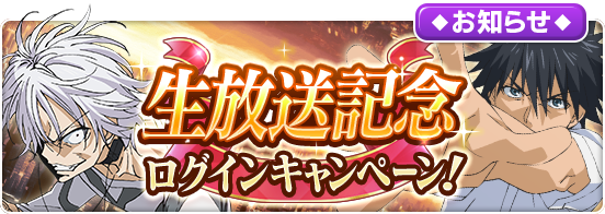 『とある魔術の禁書目録 幻想収束(とあるIF)』にて、2020年3月29日(日)5:00より、「生放送記念ログインキャンペーン」の開催が決定しました。