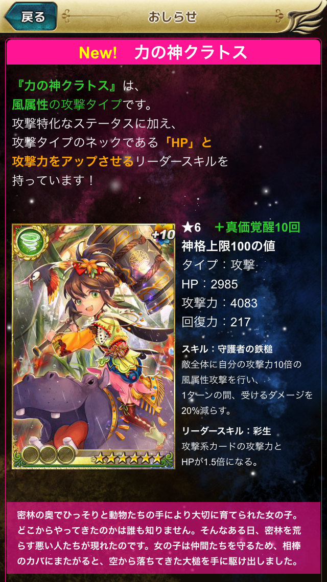☆6力の神クラトス:55回、60回、65回、70回、73回、76回、80回、83回、86回、90回、100回