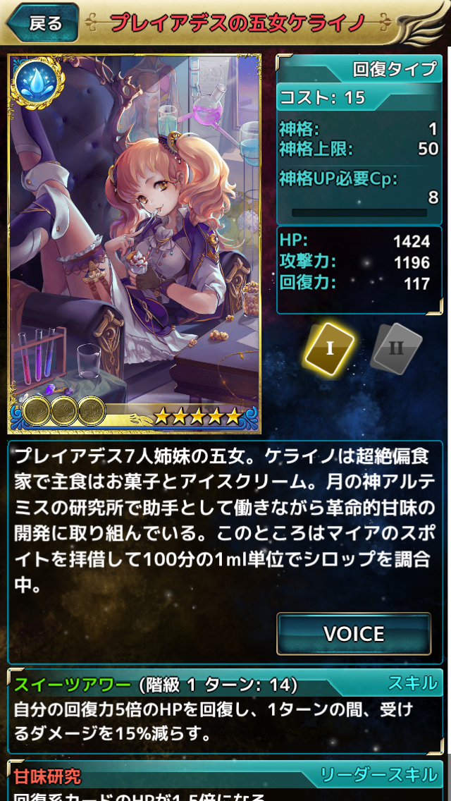 ☆6のスキルは回復しつつ受けるダーメージの軽減、リーダースキルはHPと攻撃が1.5倍になります。