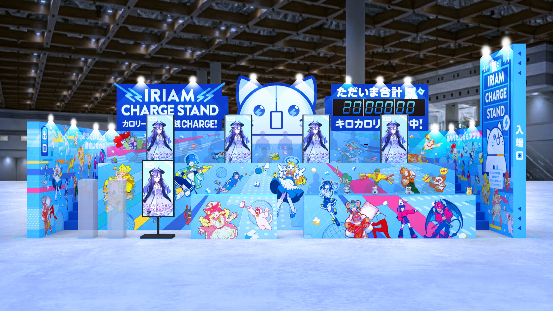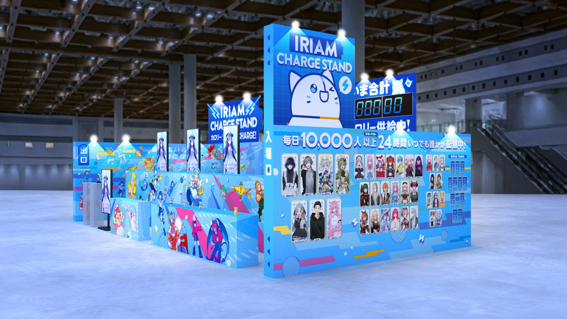 さらに、IRIAMアプリ内イベントの入賞ライバーが壁面の装飾として掲載され、ユーザーから投稿されたIRIAM配信の切り抜き動画がモニターに公開されます。