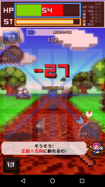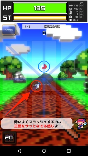 モンスターが現れたら、スラッシュ可能な8方向に勢い良くスラッシュしましょう。
