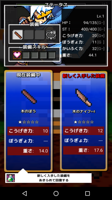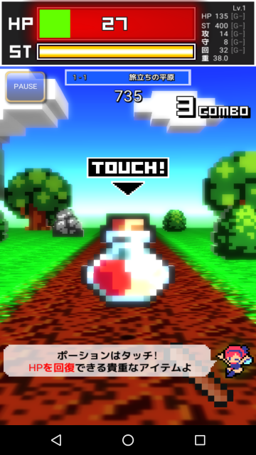 また、道中で宝箱やHPを回復できるポーションも手に入ります。宝箱の中には、装備などが入っており、宝箱を拾ったその場で装備可能。