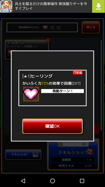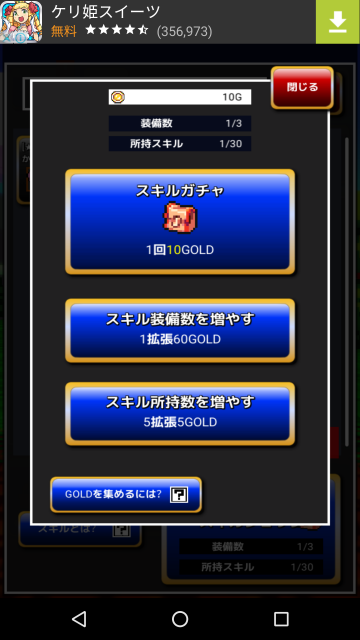 ゴールドが貯まったら、スキルガチャを引いてみましょう!スキルは、必殺技や回復など道中で発動でき、ガチャでしか獲得できません。一度使用したら、表示されている数字の数だけモンスターを倒さない限り、再度使用できないので注意しましょう!