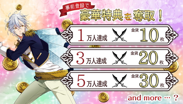 事前登録は、Twitter、LINE、メールで登録できるキャンペーンです。事前登録者の人数が上がっていけばいくほど、アプリ配信時に豪華アイテムをプレゼント!