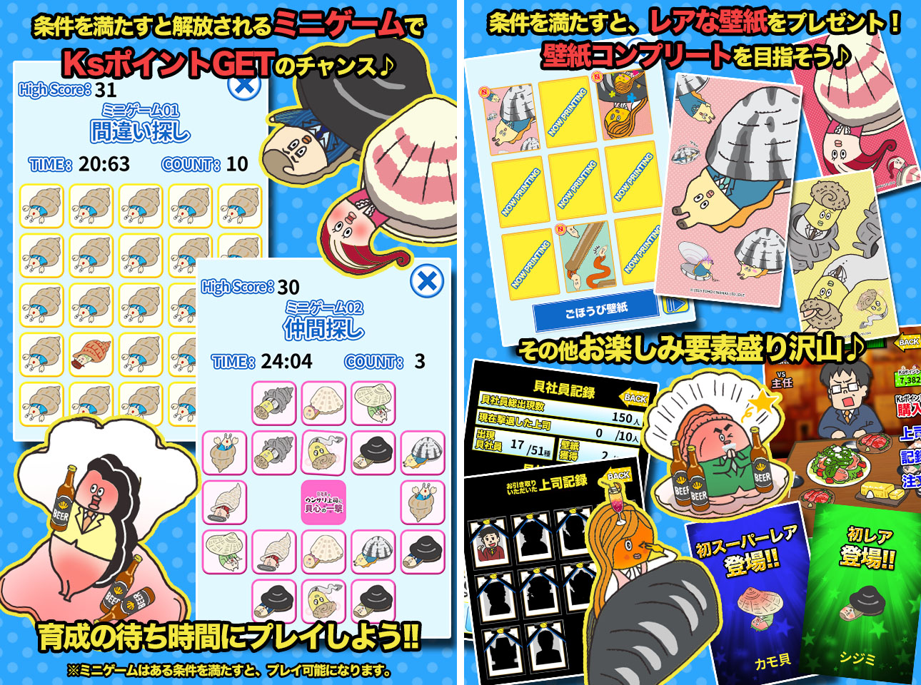 全上司撃退、貝社員図鑑コンプ、壁紙コンプを目指そう!