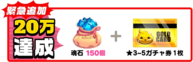 200,000人突破 | 魂石150個+★3~★5ガチャ券×1枚 |