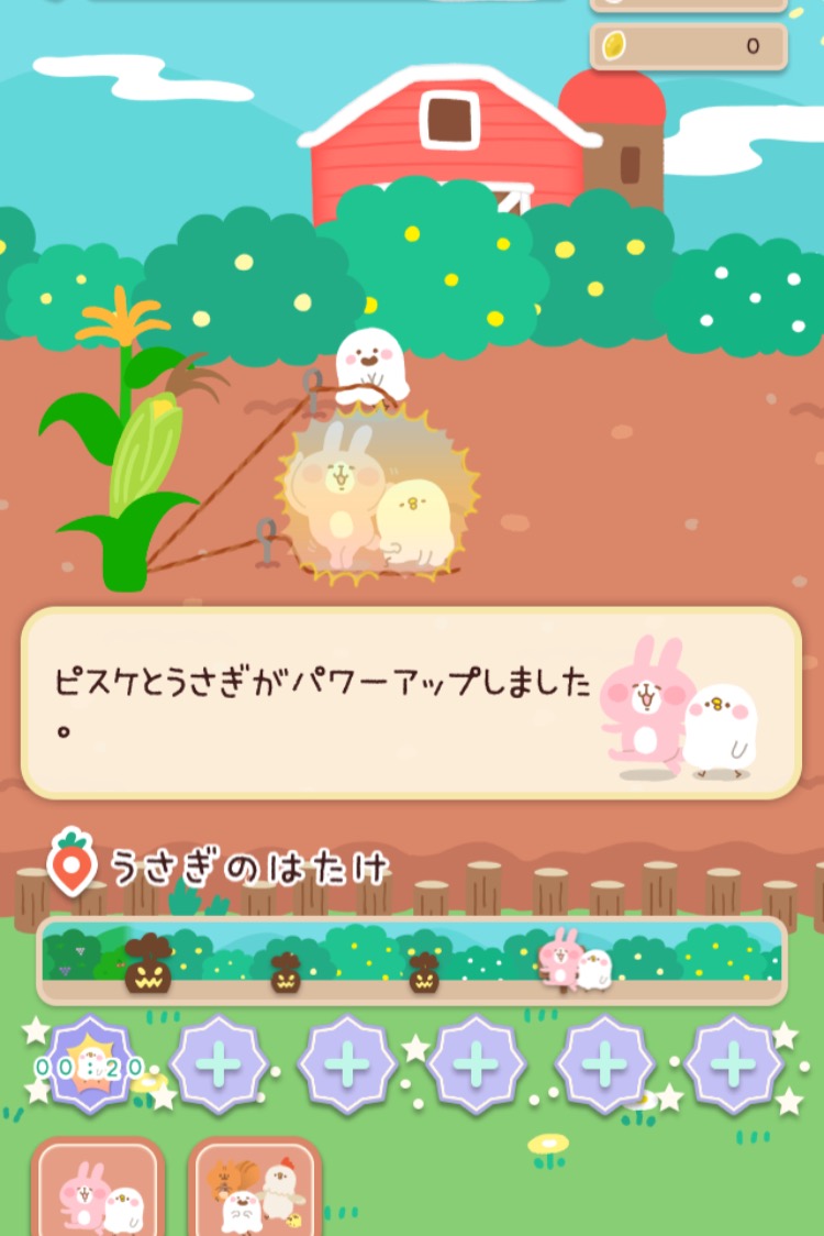 ちなみに、どんぐりがなくて強化ができなくても、ピスケとうさぎには覚醒という強化方法もあります。この効果を使うと、一定時間パワーアップ!
