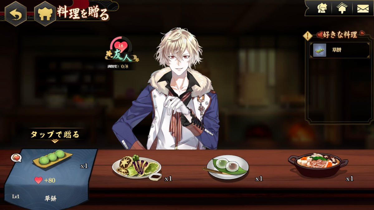 ▲好きな料理を贈ると「絆」レベルが大幅アップ!