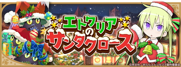 芳文社「まんがタイムきらら」の作家陣が描く、マンガのキャラクター&ゲームのオリジナルキャラクターが多数登場するスマートフォンゲーム『きららファンタジア』は、2017年12月18日(月)17:00より、期間限定イベント「エトワリアのサンタクロース」を開催します。