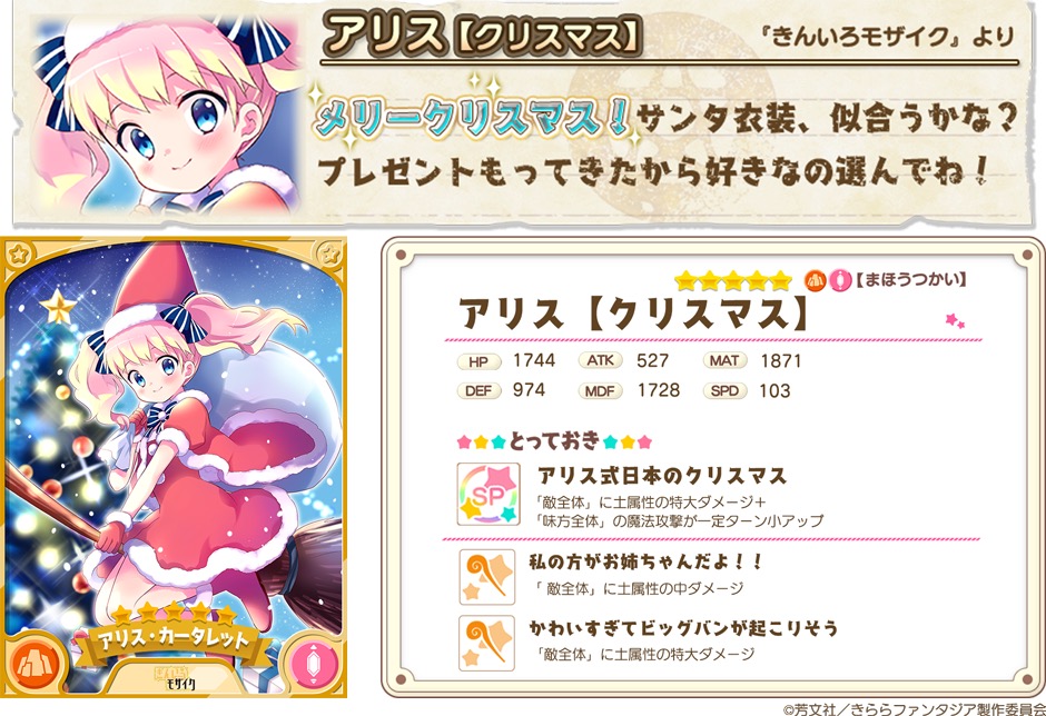 『きららファンタジア』は、本日12月18日(月)より、新イベント「エトワリアのサンタクロース」で活躍するキャラクターが登場する