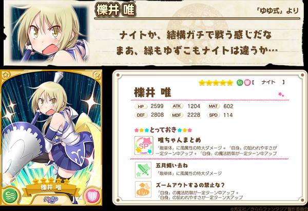 また、すでに登場している★4「ソーニャ(CV.田村睦心)」の出現率もアップするのに加え、新衣装の★5「櫟井唯(CV.津田美波)」がピックアップ対象として追加!