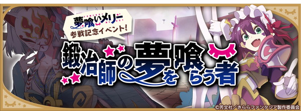 『きららファンタジア』にて、本日2018年2月19日(月)より、「夢喰いメリー」の参戦を記念した、新イベント「鍛冶師の夢を喰らう者」が開催されました。