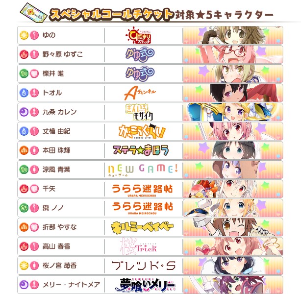 ※本キャンペーンの対象以外の★5キャラクターは、「スペシャルコールチケット」の召喚候補には追加されません。