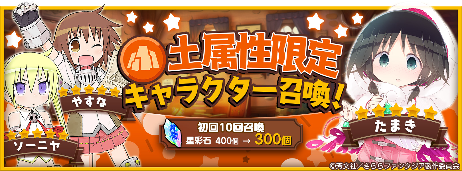 土属性キャラクターのみ登場する「土属性限定キャラクター召喚」が開催中!