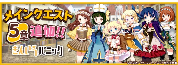 『きららファンタジア』にて、本日2018年5月23日(水)17:00より、メインクエスト5章「きんいろパニック」が追加されます。