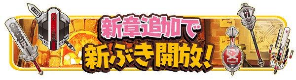 メインクエスト5章の追加にともない、鍛冶屋にて、新しいぶきが作成できるようになりました。