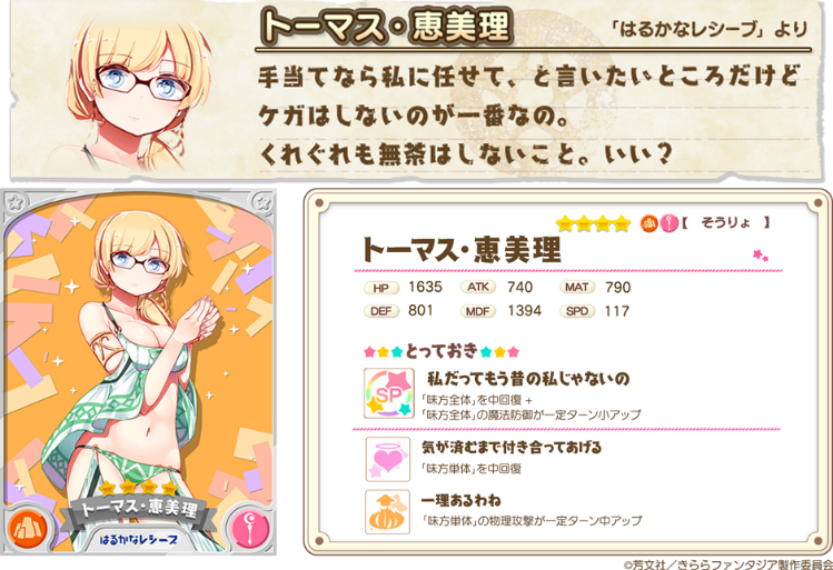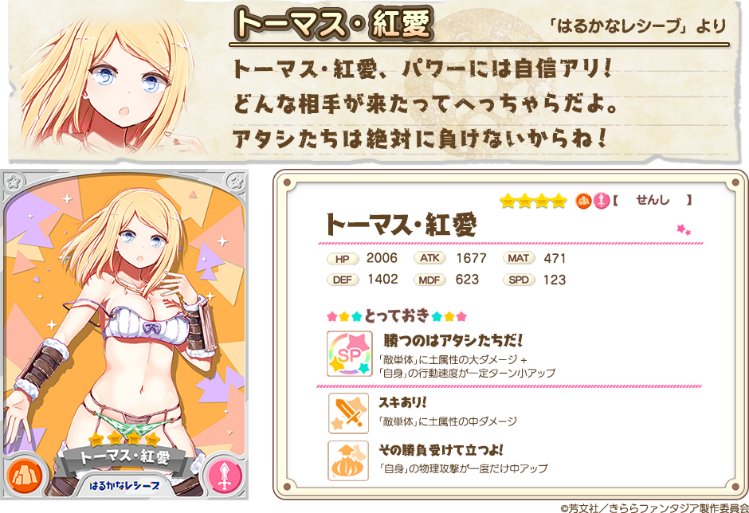 『きららファンタジア』にて、2018年8月30日(木)より、「はるかなレシーブ」に登場するキャラクターが新たに参戦します。これに伴い、「大空遥(CV:優木かな)」、「比嘉かなた(CV:宮下早紀)」、「トーマス・紅愛(CV:種﨑敦美)」、「トーマス・恵美理(CV:末柄里恵)」の出現率がアップした「謎の島と絆の試練ピックアップ召喚(前半)」が開催予定です。