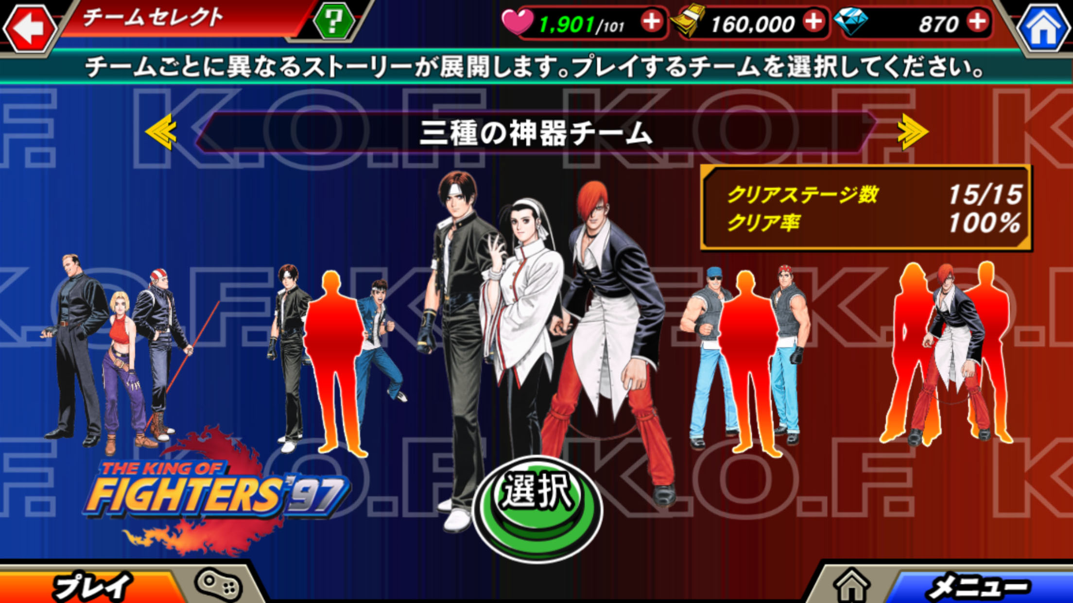 ストーリーモードに「KOF’97」が追加されました。全16チームのシナリオが完全網羅されています。