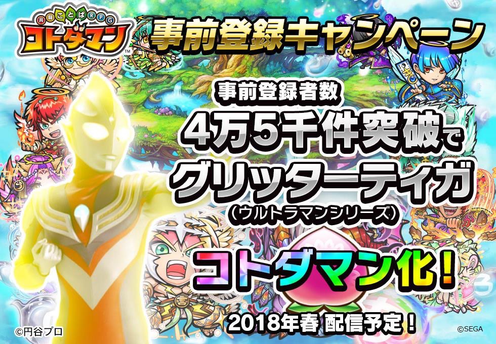 事前登録4万人突破!4万5千件突破で「グリッターティガ」もコトダマン化!