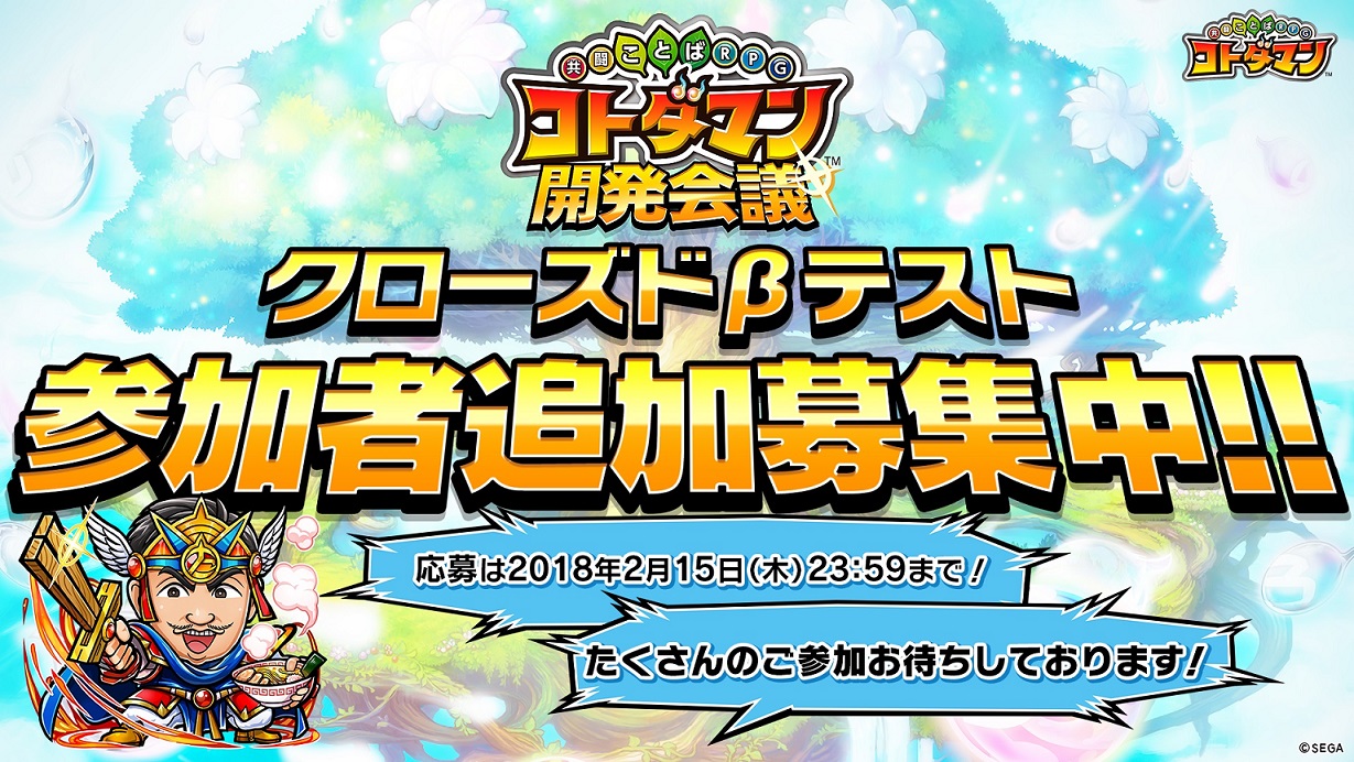 「コトダマンが面白い」「遊びたい」などのユーザー方の声に応えて、本日2月9日(金)〜2月15日(木)まで、いち早くコトダマンを遊べる事前体験プレイ