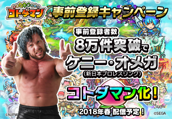 4月16日(月)に配信が決定した『共闘ことばRPG コトダマン(コトダマン)』の事前登録7万5千件突破!8万件突破で「新日本プロレスリング」の「ケニー・オメガ選手」がコトダマン化します。